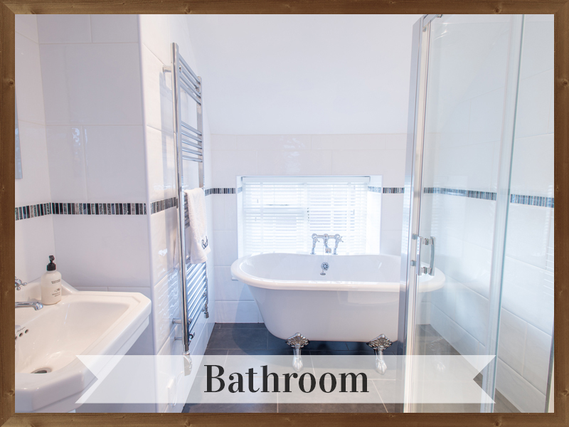• Feel everything melt away as you sink into our lovely roll top bath, choose from a selection of products in our bathroom basket and feel yourself unwind. When you get out our fluffy warm towels will keep you feeling on cloud nine!
